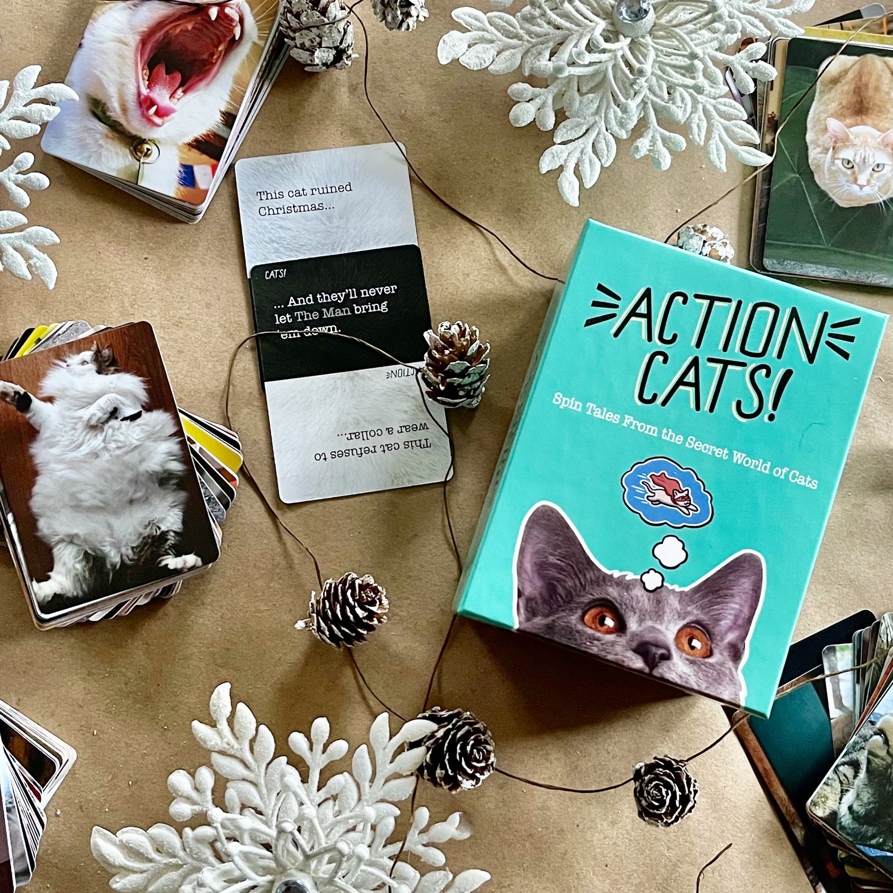 Action Cats!  a fluffy, delightful, family friendly  creative storytelling game where you compete to tell the secret life story of a cat!