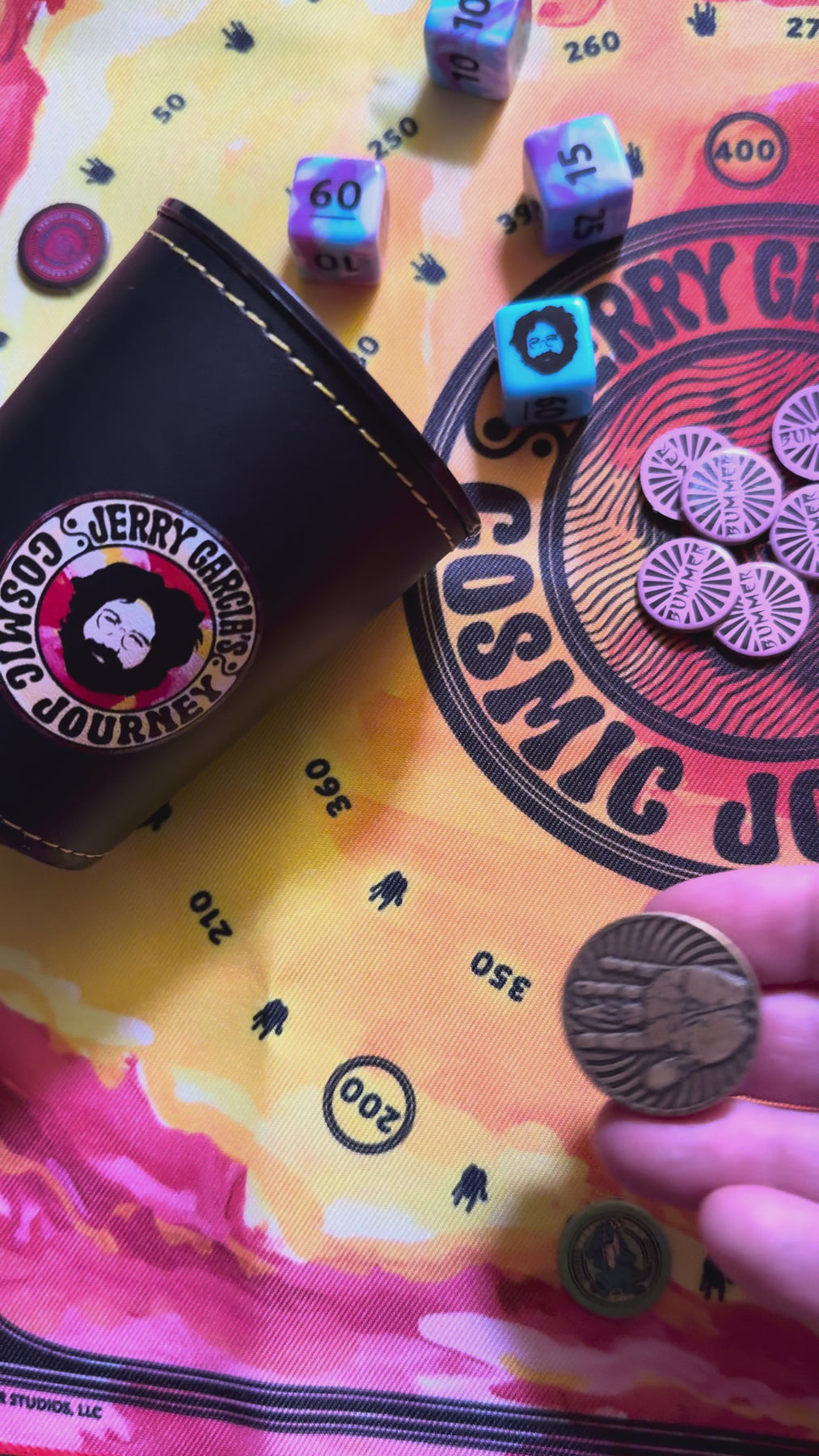 Etched and struck in brass by the artisans at Shire Post Mint, this 1.25 inch coin is a spinner, capable of pointing in the direction of the divinely appointed first player, the person who needs to buy the next round, or a reminder that Jerry Beats Bummers when you need it.
